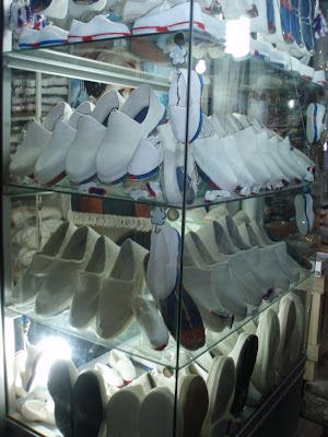 Kött köper man färskt. I stora stycken eftersom familjen normalt är stor. De färska bullarna, de var lockande men bättre handla hemma i Ainkawa genom luckan ut mot gatan. EN påse urbilligt! Purfärskt bröd går alltid att köpa om man vet var luckan är. Kalsonger, njaej. Det klarar vi oss helt utan. Varför måste dom stå ute på gatan med sånt? Typiskt finns varor för män längs gatan. Ute. Inget för oss kvinnor. Då får man smyga in på Bazaren långt in nånstans. Skyltas inte ute. Men gott om kalsongstånd finns det. Telefonkort. Ja, det behöver man nästan alltid. 10 dollars och Korek blir bra. Lättillgängligt på gatan och i nästan alla småaffärer också. Symaskin, visst. Laga mat, städa och sy. Gift fru får nog en egen symasking om hon kan och vill sy. Det är bra för då kan hon skaffa sig en egen inkomst trots att hon med 90% sannolikhet är hemmafru. Det var dagens urval för shopping.